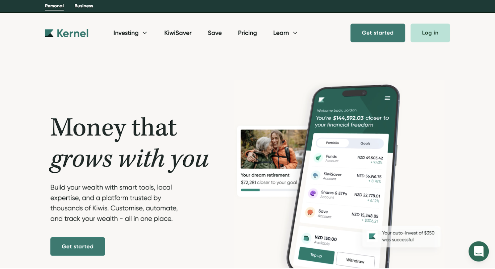 Key features: Financial projections, portfolio building, KiwiSaver advice.